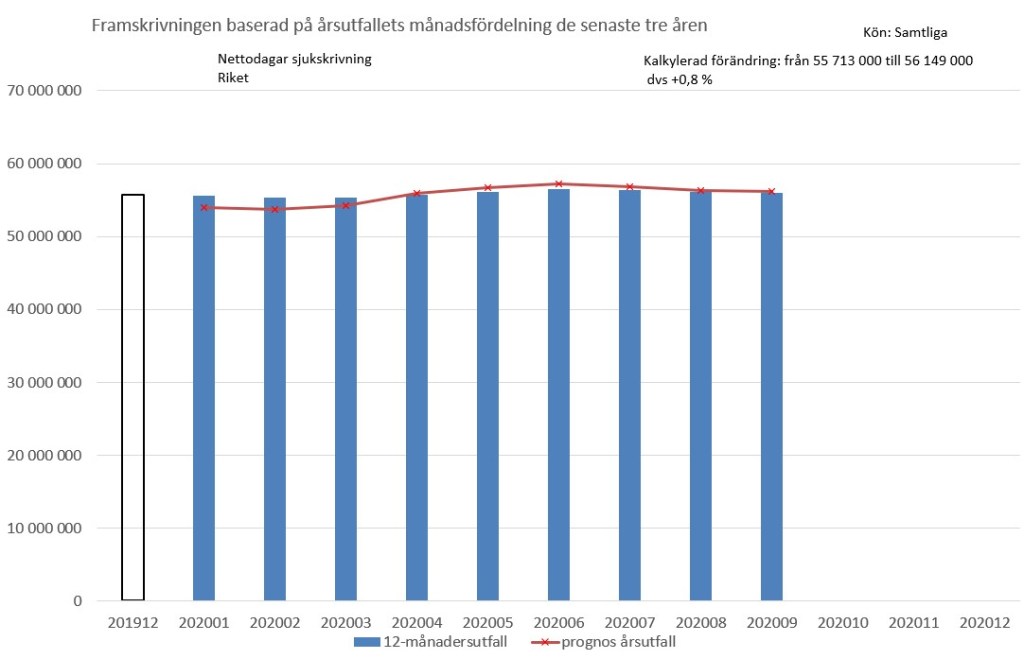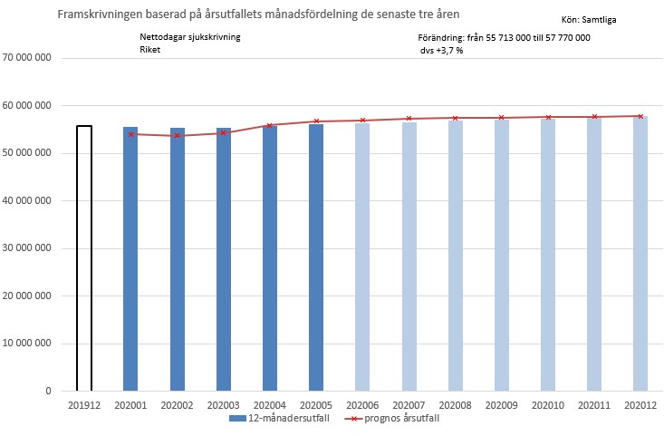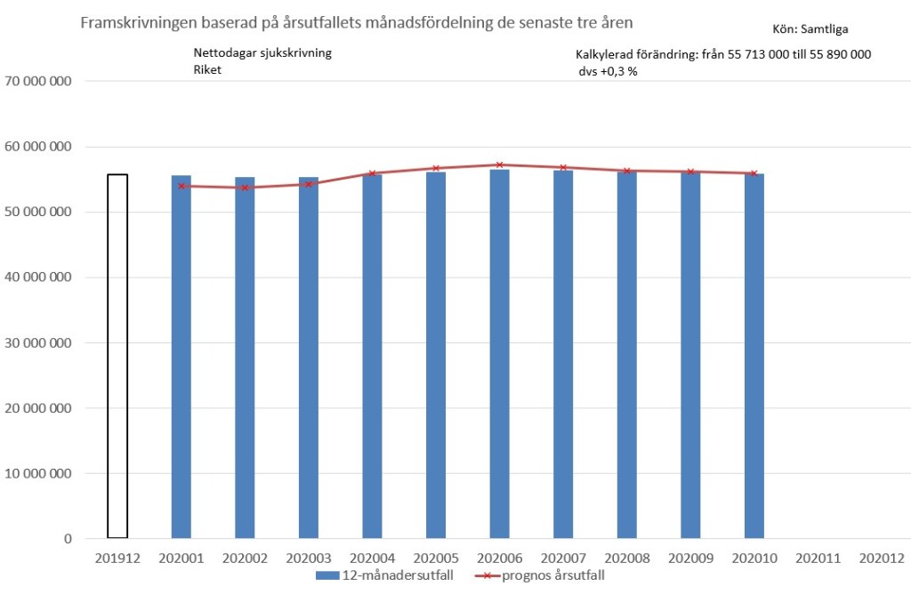 Dagarna väntas öka med 1,5 miljon dagar och kring 60% av detta kommer från de kortare fallen, som vi alltså kan tydligt se ökar.