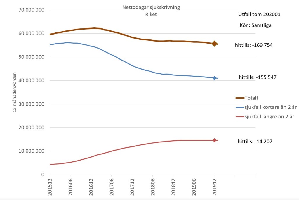 Dagarna väntas nu öka med 1,1 miljon dagar och kring två tredjedelar av detta kommer från de kortare fallen, som vi alltså kan tydligt se ökar.