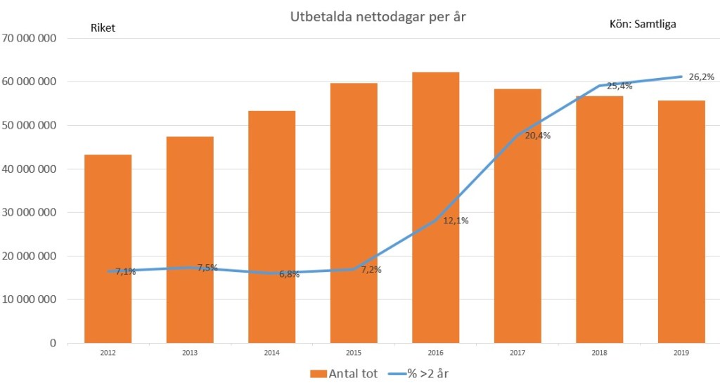 Minns då att nära 40% av alla pågående sjukfall pågått i mer än 1 år.