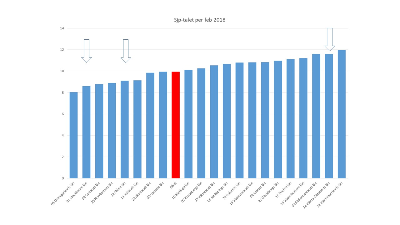 Fast dra inga förhastade slutsatser om Jämtland. Förr i tiden hade Jämtland höga sjukskrivningstal. Men det var förr i tiden. Nu ser det ut såhär: